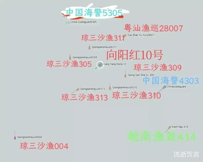 随着"向阳红10"号船队的返航,我海警5403船在过去的两周里一直持续在万安滩诸岛礁之间实施常态化巡航作业。航迹遍布周围所有礁盘,展示出中国的坚定立场并向越南释放出强力的震慑信号。