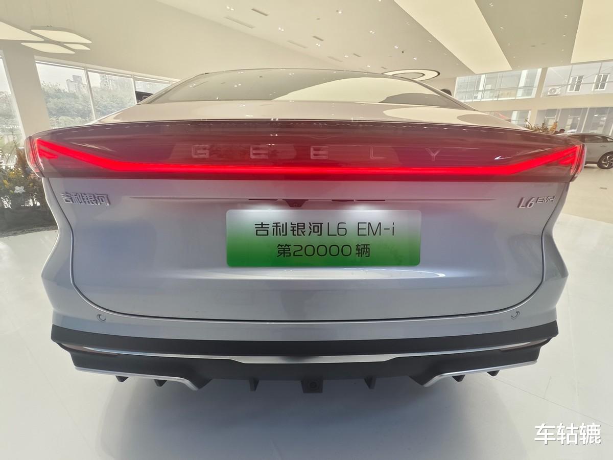 吉利银河L6 EM-i封闭式前脸搭配分体式贯穿灯组,溜背造型+悬浮车顶营造轿跑姿态,新增水光蓝、极光银等7种配色,扩散器造型尾部和可选装尾翼强化运动属性。