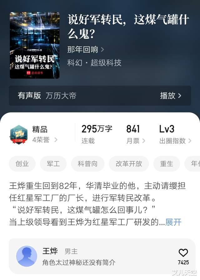 小说开局的路子跟那年回响的《说好军转民,这煤气罐什么鬼?》看着类似。