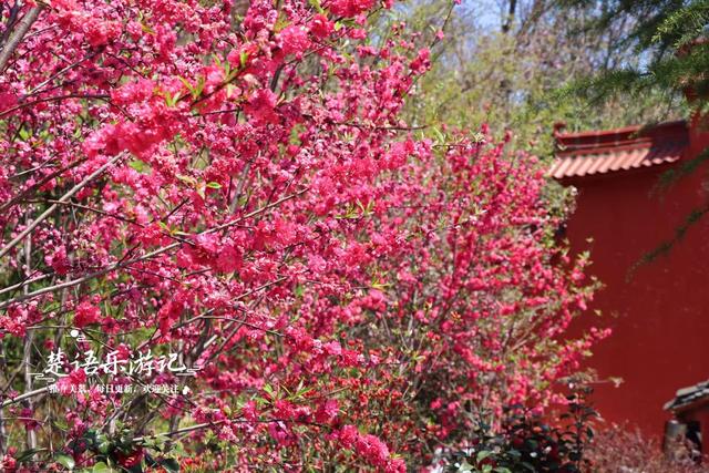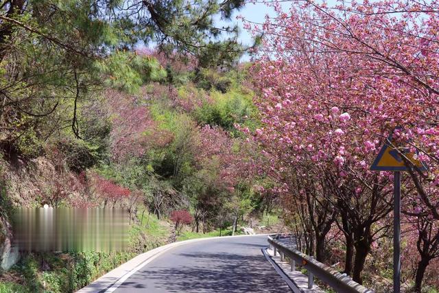红花碧桃的旁边有一条红墙黛瓦的寺庙,对面是一家餐馆,名为鲁家小院。在这里我遇到一位村民,她告诉我樱花公园在来时的路边,我于是原路返回,到了樱花园入口。