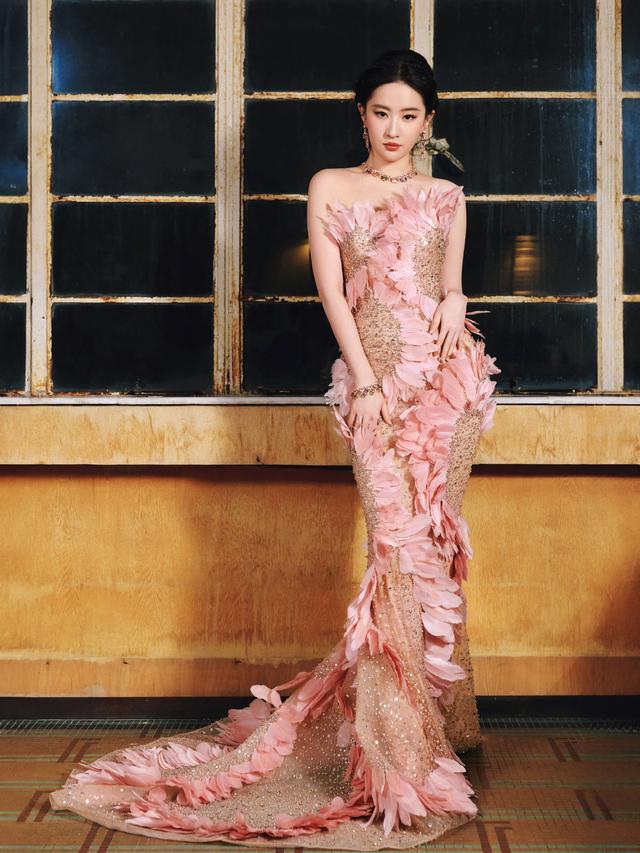 刘亦菲以压轴身份优雅亮相,身着一袭粉羽闪钻高定Elie Saab 2025 春夏高定系列礼服,佩戴宝格丽BVLGARI高级珠宝。