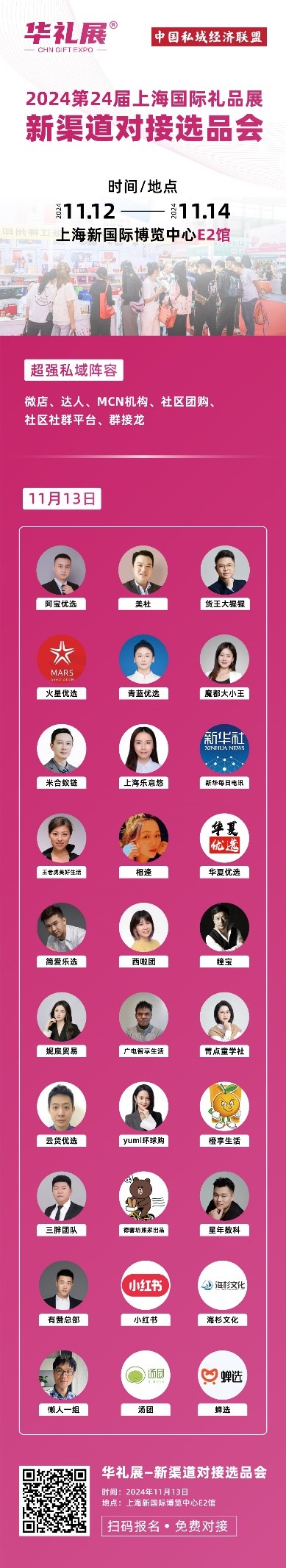 随着礼品行业需求的不断迭代,市场的需求场景也在持续演变。为了紧跟2024年礼品市场的潮流,深入挖掘新用户群体的多元化需求,为此,2024年上海国际礼品展(注,以下简称“展会”)将于11月13日在上海新国际博览中心E2馆举办——2024礼品新渠道对接选品会!