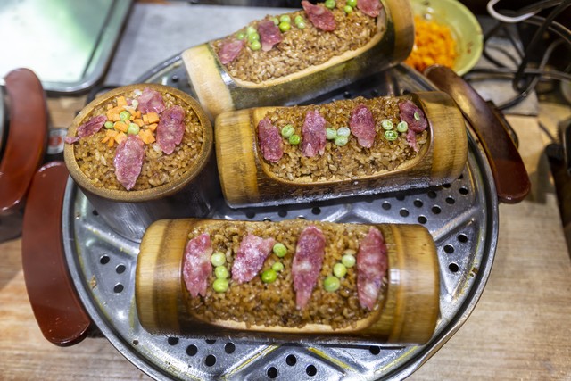 品尝当地的美食,也是龙脊梯田之旅不可或缺的一部分。那些用新鲜的食材、传统的烹饪手法制作而成的特色菜肴,每一口都饱含着浓浓的乡土味道。比如竹筒饭,将糯米和各种食材装入竹筒中,用炭火烤制而成,打开竹筒的那一刻,香气四溢,米饭软糯,还带着竹子的清香;还有烟熏腊肉,经过长时间的腌制和烟熏,肉质紧实,味道醇厚,无论是炒菜还是炖汤,都别有一番风味。这些美食不仅满足了味蕾的享受,更是让人深入了解到这片土地上人们的生活方式和饮食文化。