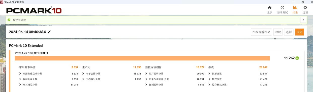 办公性能是我们使用电脑的一个重要用途,这里使用PCMark 10 Extended测试来观察紫光内存UNIS SSD S2 Ultra的办公性能表现: