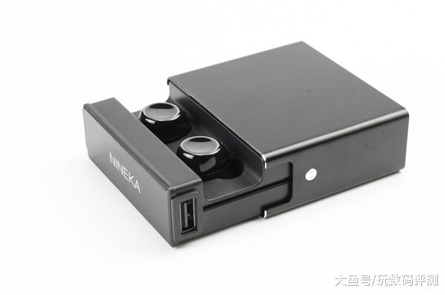 充电仓的金属质感很强,配合上高光倒角,看上去有着精致的感觉,顶部NINEKA的字样彰显着它的品牌身份。就整体的做工来说,南卡N2属于上乘水准,符合其一贯的高标准。