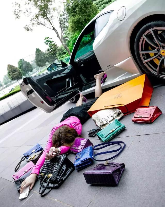 博主需从名牌跑车中佯装跌倒,顺势将各类奢侈品洒落一地,无需其他操作,坐等走红。其核心便是炫耀地上的奢侈品包、大牌物件或是私人飞机、豪车等。