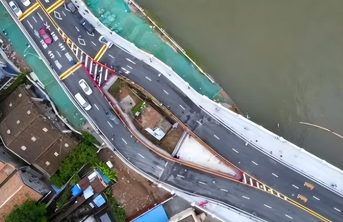 从这个角度看上去,梁蓉的家被两边的桥面包围下,形状好像是一只眼睛。