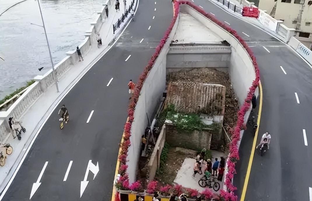 由于大桥上过往车辆非常多,速度也很快,政府为了梁家人出入的安全考虑,还专门给她们在桥底下留了方便出入的桥洞。