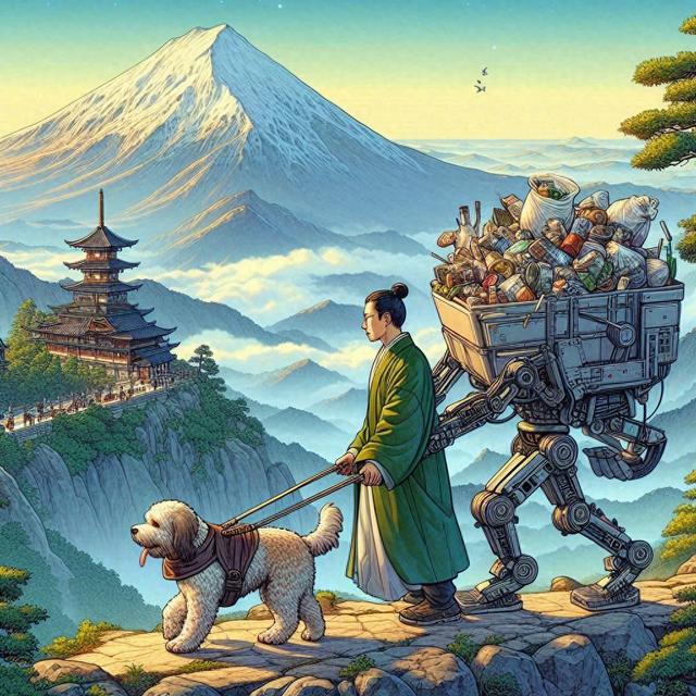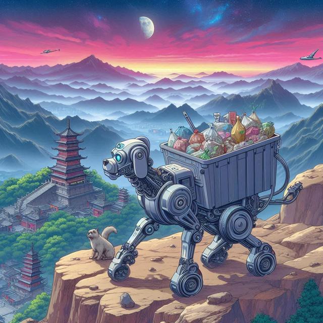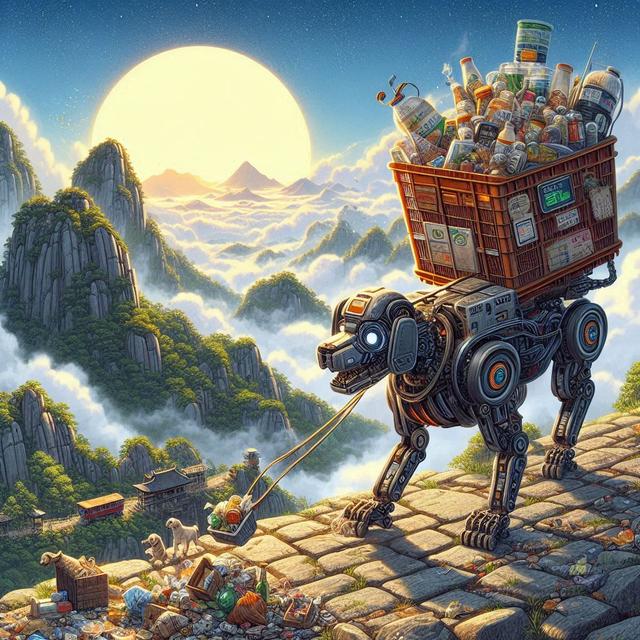 每年的春天,我都会去泰山徒步一次,呼吸新鲜的空气,感受大自然的美妙。然而,这次的经历格外特别。在一个阳光明媚的早晨,我正沿着泰山蜿蜒的石阶攀登,突然一阵轰鸣声吸引了我的注意。低头一看,一只小型机械狗正灵巧地在台阶上飞奔,背上还背负着一大袋垃圾。