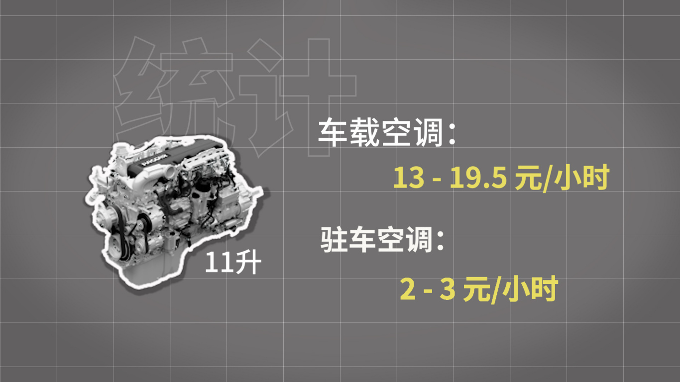 有人统计过,一台11升排量的柴油机,在怠速状态下,车载空调每小时要花费13到19.5元,而驻车空调每小时则只要两到三元。