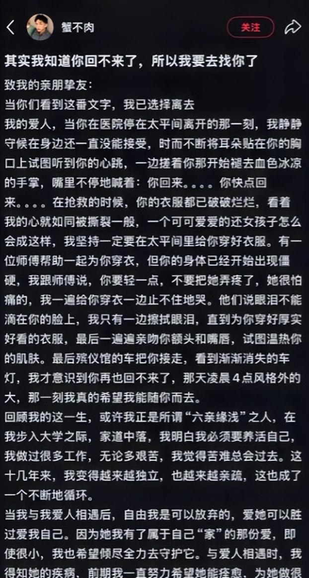 那是一封绝笔信,字里行间的深情和绝望,刺痛了每一个看到的人的心,还有网友感觉不对报了警。