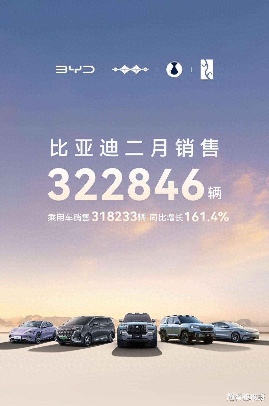 都说春节前后这段时间是汽车界淡季,但我咋觉得这句话放在比亚迪这不管用了。因为比亚迪在2025年2月的销量数据真的太梦幻了,单月销量直接达到了32.28万辆,同比增长了164%,全能销冠国内外多点开花,稳坐“全能销冠”宝座。