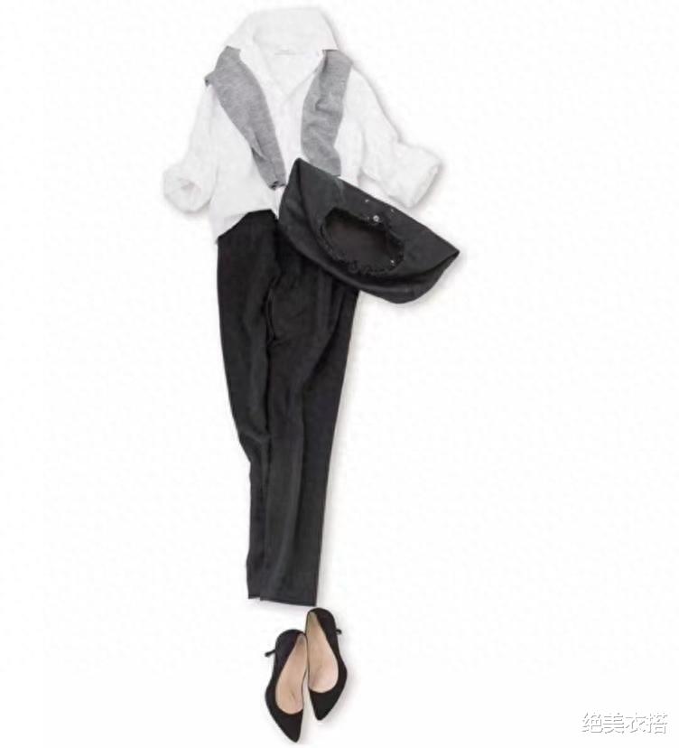 白衬衫+小黑裤,就是证明。幸好,一抹灰色调和,缓和得机智极了。