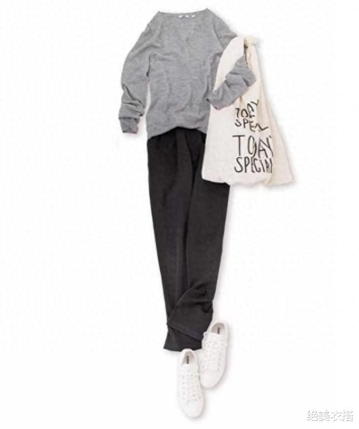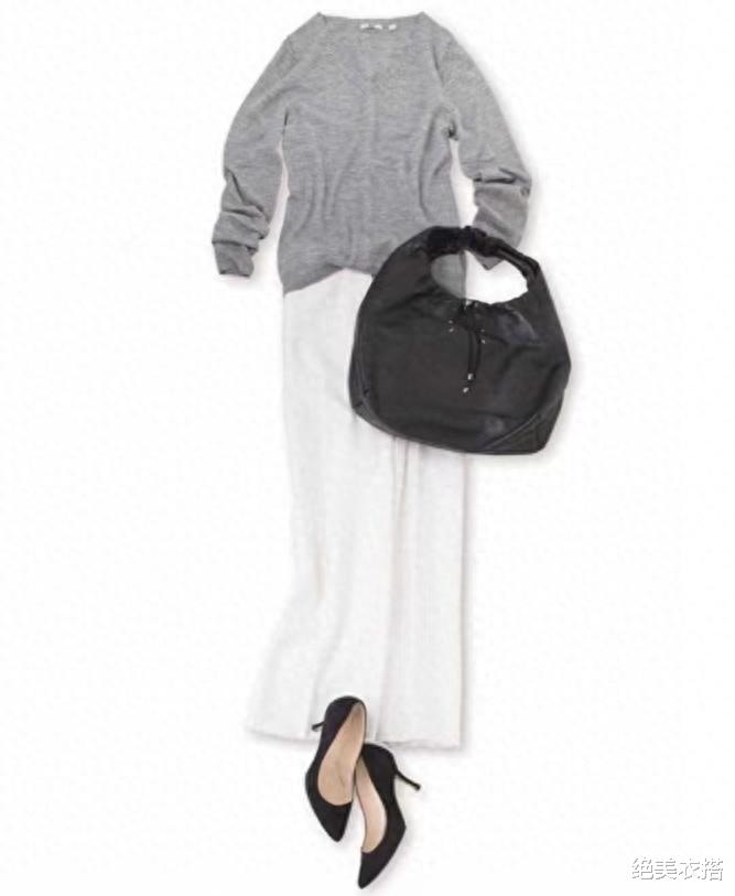 这样的搭配,鞋包有3种选择:可黑、可白、可灰,百变出多套风格。