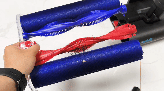 在解决毛发缠绕问题上,戴森不仅在吸尘器领域有着丰富经验,WashG1同样也表现不俗。实际测试发现,无论是线团还是毛发,清洗过后它并不会直接缠绕在主刷上,而是被尼龙刷刷下并“困住”,后续只需要用纸巾捋一下就能清除。这对于家中养宠物的人群更加友好,不用担心主子的掉毛问题影响主滚筒的清洁效果。