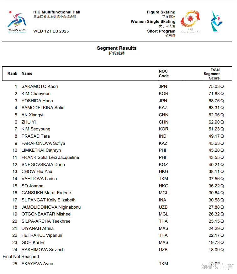 北京冬奥会铜牌、世锦赛金牌得主,日本名将坂本花织跳跃质量并不是很完美,周数和用刃也离奇出现了问题,但裁判依然打出了75.03的分数,断层领先。