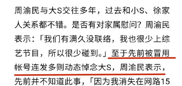 在大S离世之初,网络上曾流传出一组声称是周渝民发布的悼念动态。