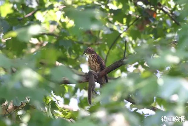 朋友圈里,鸟友文明提醒他,有可能是凤头鹰。陈水华也认为很有可能,”因为凤头鹰常在孤山一带出没,是杭州城里最常见的猛禽。常有观鸟者在孤山看到凤头鹰捕杀小鸟和松鼠。”