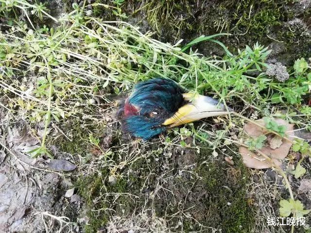 “鸟头没有产生异味,也没有腐烂,所以这只大拟啄木鸟不是得禽流感病死的,应该也没有感染病菌。”所以这只鸟,是被捕杀的,案发时间就在不久前。
