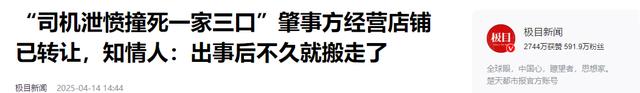 极目新闻2025-04-14——“司机泄愤撞死一家三口”肇事方经营店铺已转让,知情人:出事后不久就搬走了