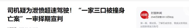 封面新闻2025-04-15——司机疑为泄愤超速驾驶!“一家三口被撞身亡案”一审择期宣判