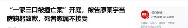 极目新闻2025-04-15——“一家三口被撞亡案”开庭,被告廖某宇当庭鞠躬致歉,死者家属不接受