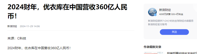 有博主最新发文表示,优衣库的营收达到了360亿元。