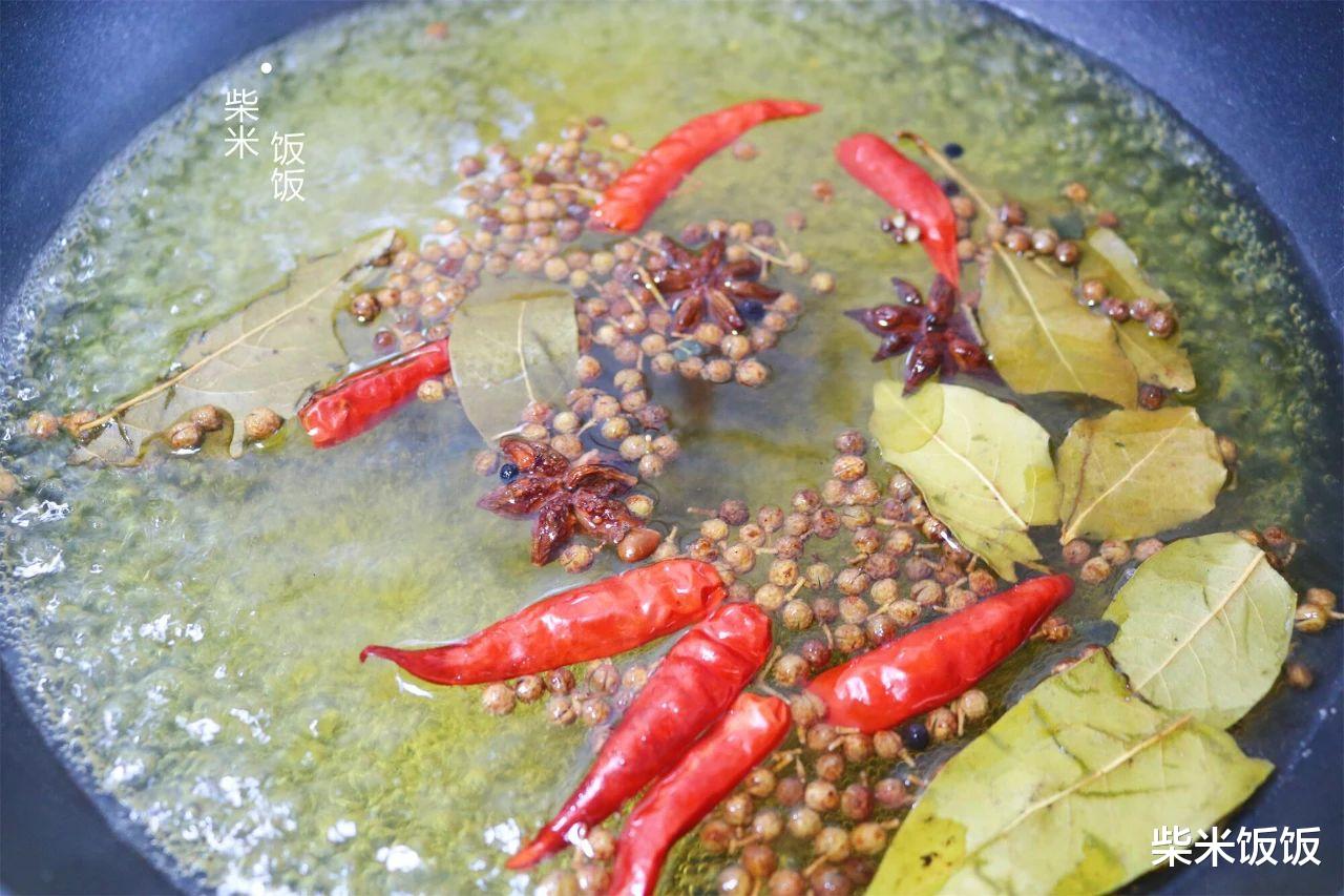 1,锅中加水,放入几个八角、香叶、干辣椒、花椒,大火煮开,再转中小火煮5分钟,将香料的味道煮出来。