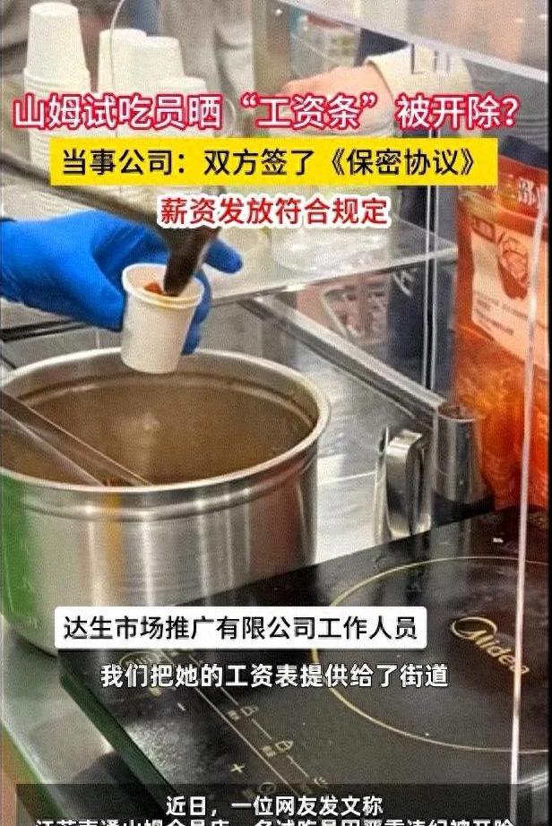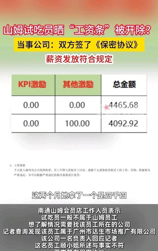 一位在山姆会员店工作的试吃员,因为分享了自己的工资条,竟被公司开除。