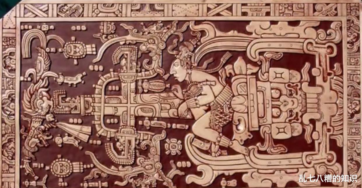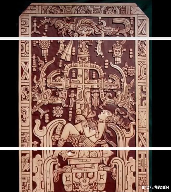 这下面好像是一个鬼的脸一样,说就是代表地下的神,于是就分为地下、人间和天上这三界,就说明他们的这个国王将会从地下飞往天上,然后实现生死轮回,可能是这个意思,反正这就是玛雅文明给我们留下了个最大的谜。