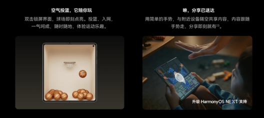 此外,华为Mate X6还拥有一系列实用的AI体验。比如小艺助手更智能的交互方式——小艺私语,当我们在会议室或图书馆等需要保持安静的场合,就可以贴近手机轻声发出指令,从而让小艺完成查找资料、记录信息等任务,不会打扰它人。还有AI隔空传送功能,只需用户做出一抓一放的手势,即可瞬间将文件分享到另一台鸿蒙设备上,科技感拉满。
