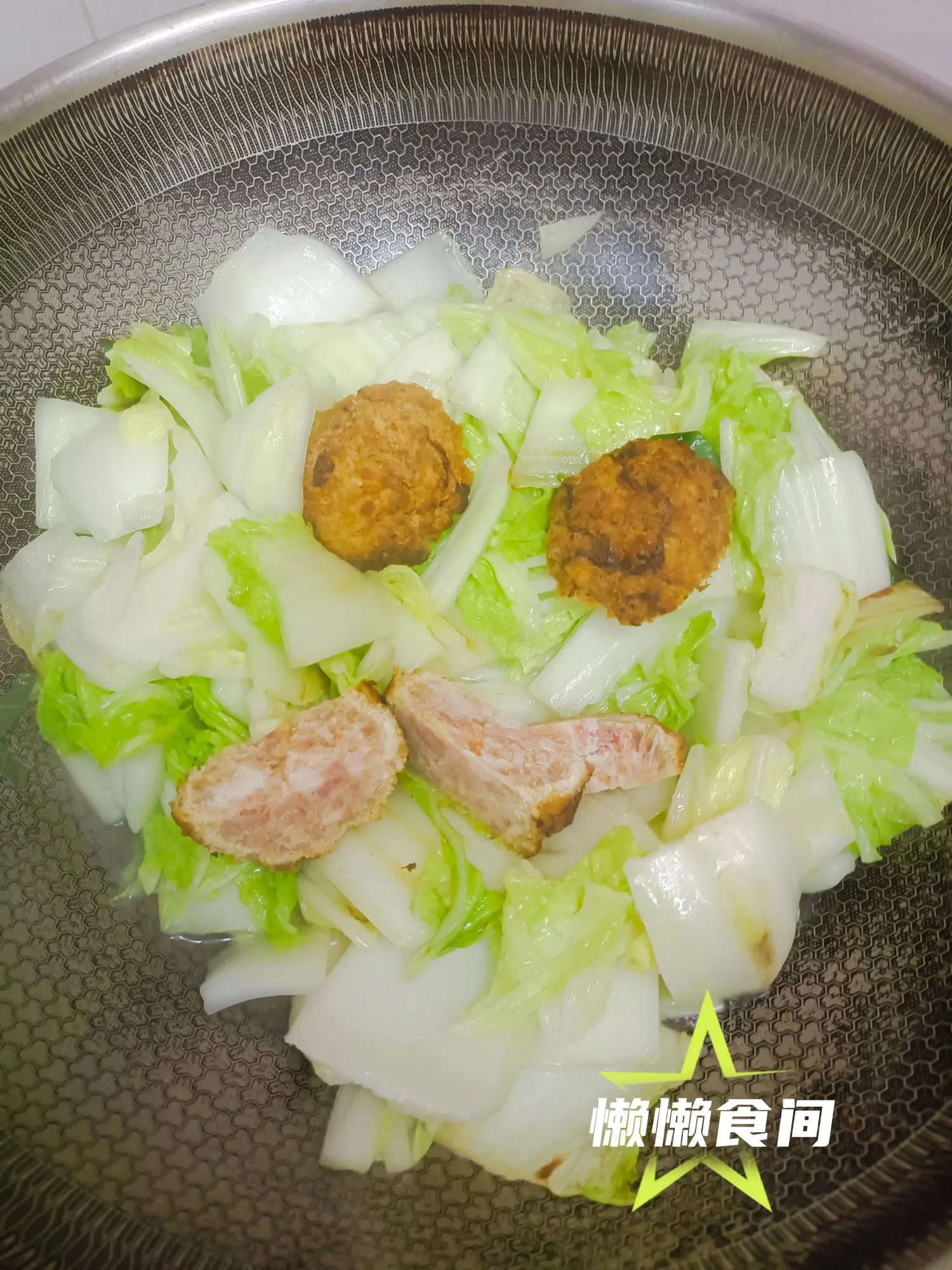 3、加入丸子(我自己之前炸的丸子,没有可以放五花肉)