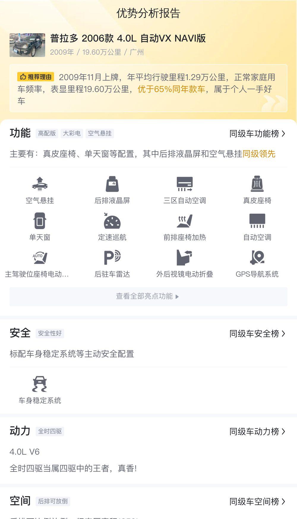 抛开情怀,理性地分析,这辆普拉多的性价比究竟如何?12.8L/100km的油耗,在如今高油价的时代,无疑是一笔不小的开支。虽然4.0L V6发动机带来了强劲的动力,但5速手自一体变速箱在燃油经济性和换挡平顺性方面已经显得有些落后。与一些 newer 的车型相比,这辆普拉多的配置也显得有些过时。真皮座椅、单天窗等配置,在如今的车型中早已是标配,而后排液晶屏和空气悬挂等曾经的亮点,也随着技术的进步而逐渐被新的科技所取代。