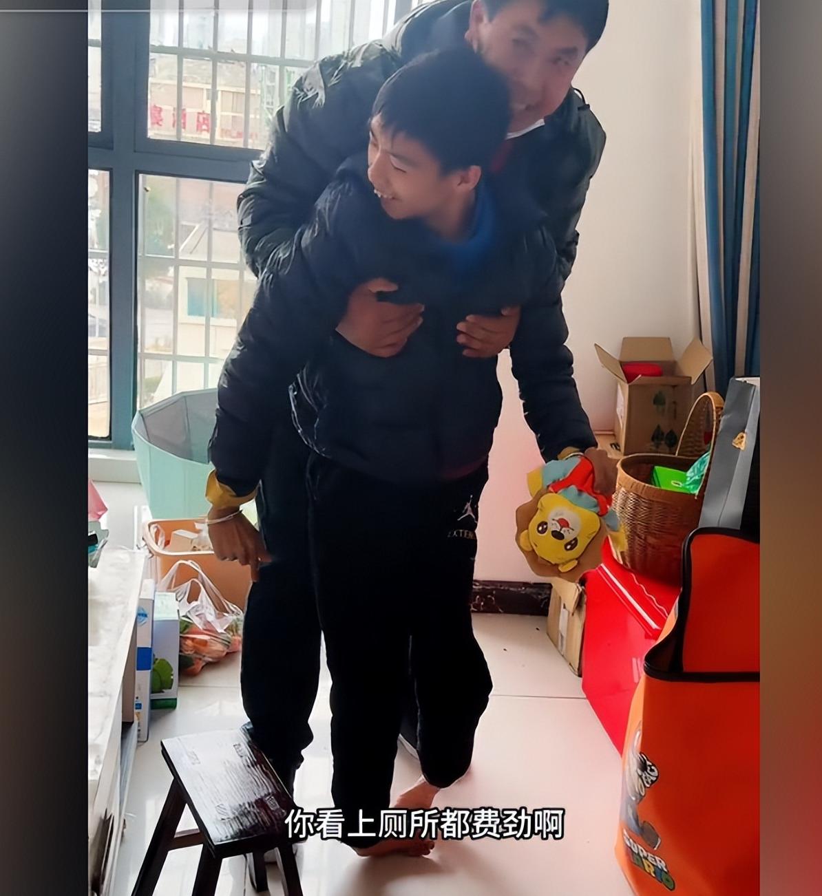 上厕所的时候,刘大哥必须从后面抱起儿子,因为建宇的脚向内勾得太严重,自己根本无法走路。