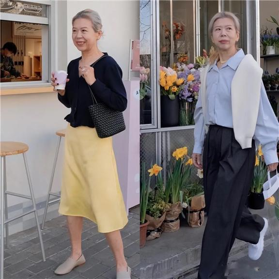 在色彩选择上,50岁女性应秉持化繁为简的原则,巧用基础色打造高级穿搭,而不是一昧追求大红大紫。