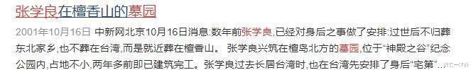张学良有两座陵墓,分别用于栖身与栖心。晚年获台湾当局释放后,他曾考虑过返回中国东北故乡。