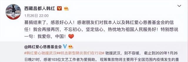 最终调查结果表明,韩红的基金会没有任何问题。