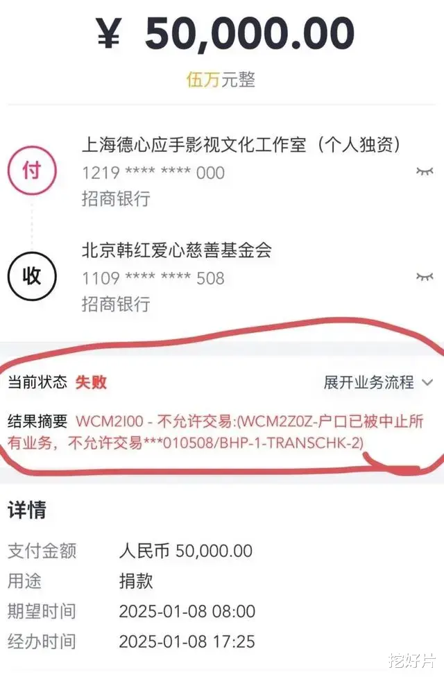 但今天马上就被打脸了,他的五万块根本就没有捐出去,是失败状态(或许他根本就没打算捐,只是炒热度)。