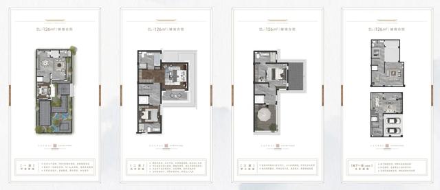 建面约126㎡合院户型,“3+2”楼层立体分明,很难想象一个126平的户型,做出了超过300平的实际使用面积。