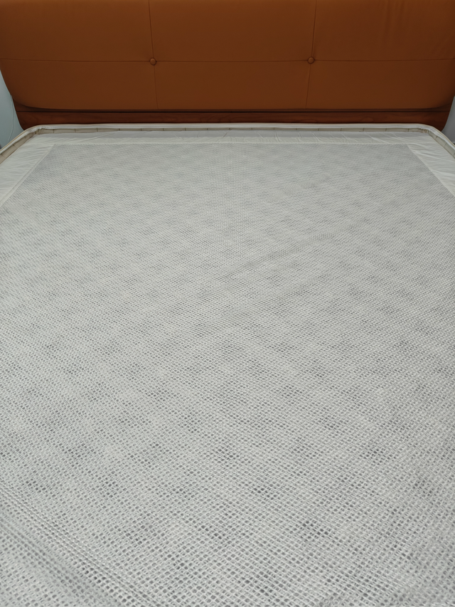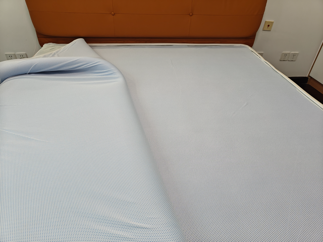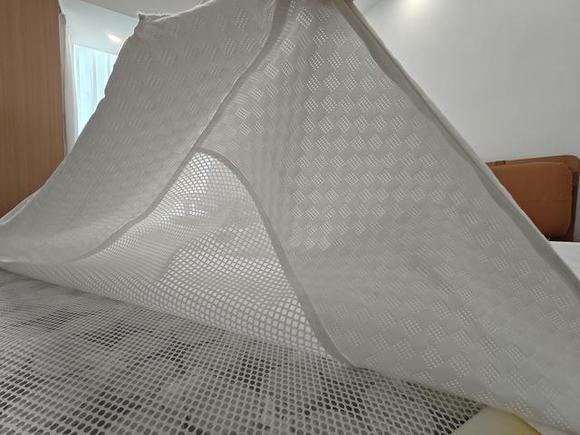 这层是巨大网眼的一层透气网布,可以把睡觉时候温热的湿气都往下排走。