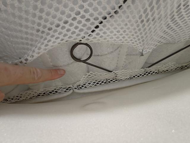 掰开看看,独立套袋弹簧是用类似这样的金属结构串联和支撑。最近上海黄梅天,湿气是很大的,但是也没有生锈,材料是很不错的!