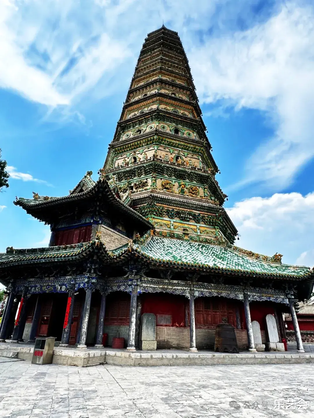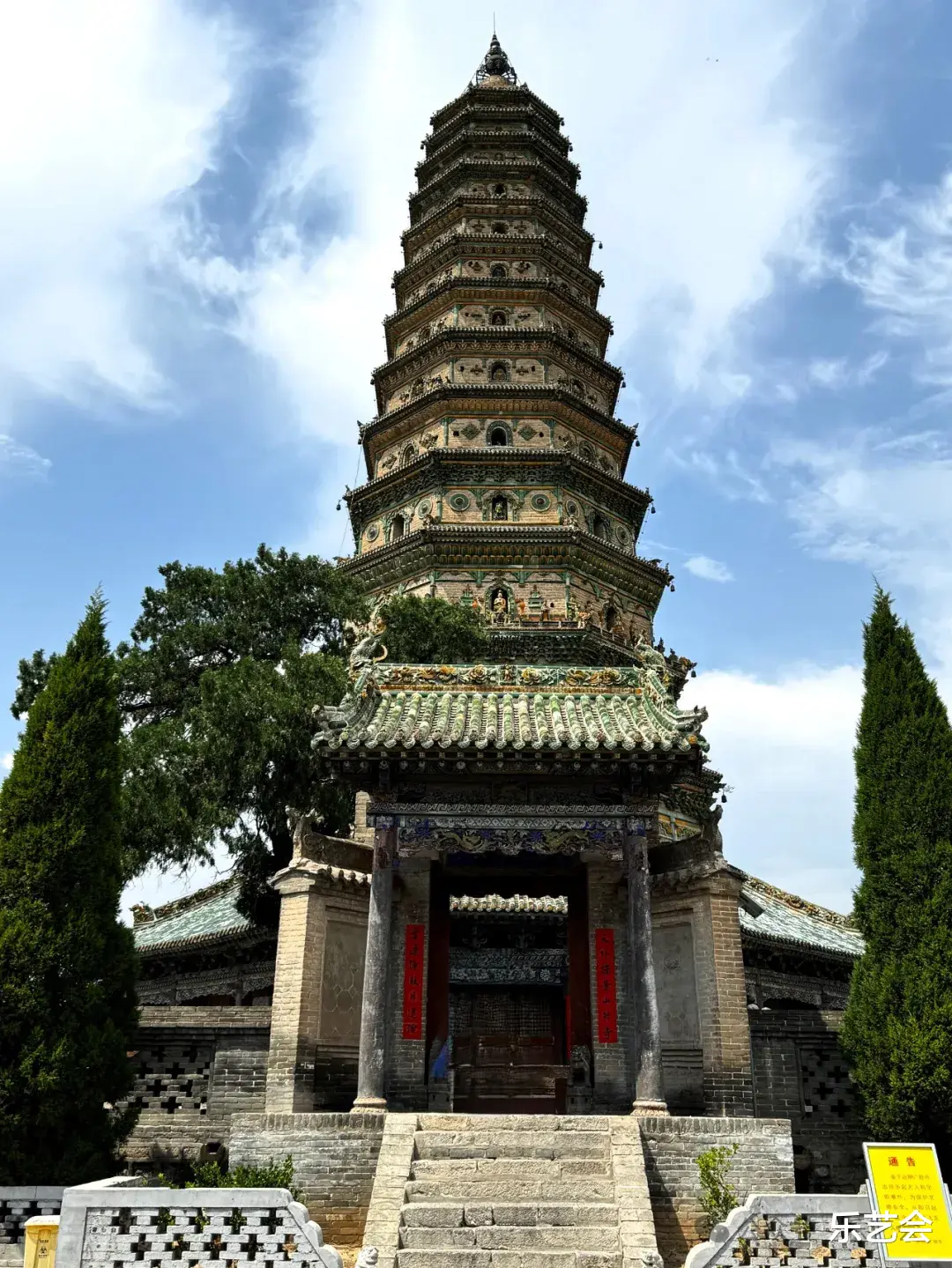 飞虹塔始建于明代正德年间,飞虹塔屹立于山门正面,呈八角形共13层,塔身高47.31米,飞虹塔是五座佛祖舍利塔和中国现存四座古塔之一,也是迄今为止发现的唯一有工匠题款、最大最完整的琉璃塔,2018年8月,经世界纪录认证官方工作人员现场测量审核,该建筑被确定为“世界最高的多彩琉璃塔。”