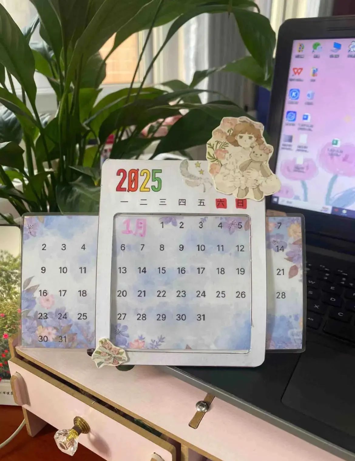 相比单纯的日历,它不仅多了翻翻乐趣,还多了摆件功能,放在桌上特别好看,建议大家都去做。