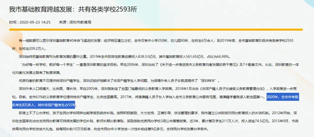 近几年,教育局官方不再公布深圳中考深户和非深户考生比例(有数据可查最近的是2020年,所有考生中非深户考生占比55%)。