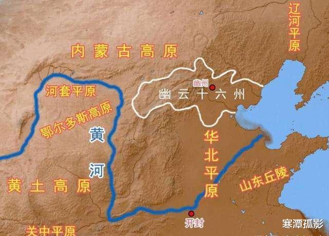 为何燕云十六州的丢失对中原王朝的影响那么大?这里大概说一下燕云十六州的位置,大概就是现在的北京,天津以及河北山西的北部这一地区。这是一块有山区高原的地方,传统就是中原大地针对北方游牧民族的天然屏障。燕云地区被割让之后,中原大地直接暴露在游牧民族的铁蹄之下,无险可守。作为汉民族核心的中原地区变成了战争的最前沿,进而中原王朝原本的根基之地就失去了后方的作用。所以中原王朝很难在北方立足。