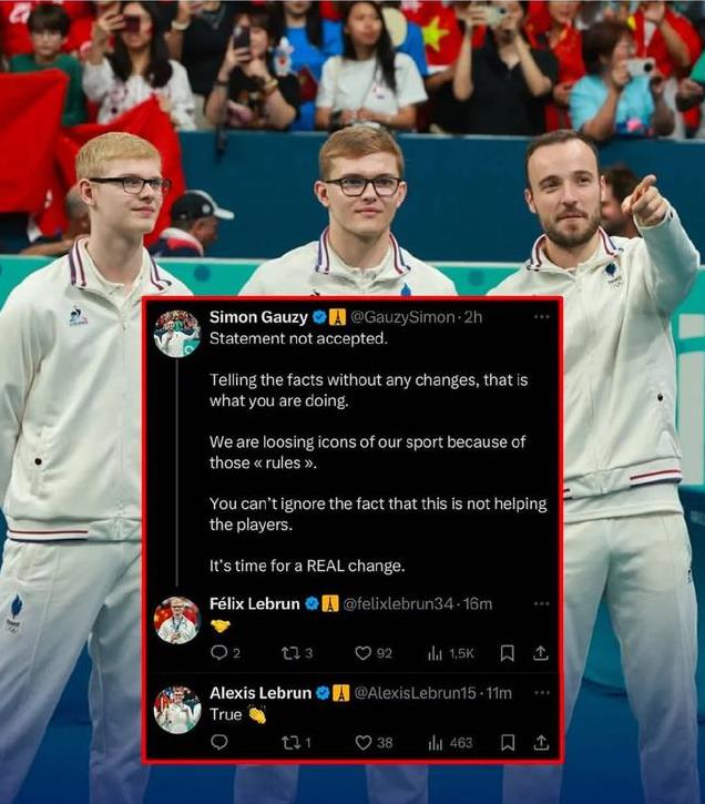 对于这份声明首先法国名将西蒙.高茨出来发声,对WTT的声明表达了极度的不满,表示不能接受。他非常愤恨的说道:不接受声明。不加任何改变地陈述事实,这就是你正在做的事情。因为这些规则,我们正在失去这项运动的偶像。你不能忽视这对球员没有帮助的事实。现在是进行真正改变的时候了。勒布伦兄弟也是力挺西.蒙高茨,回复说他说的正确。