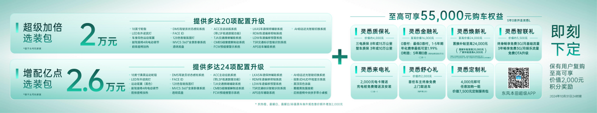 现场,灵悉L头号玩家版官方指导价惊爆出炉,12.98万元,至高可享价值4.5万元的购车权益。另提供两款选装包:价值2万元的超级加倍选装包,包含20项配置升级;价值2.6万元的增配亿点选装包,包含24项配置升级,满足用户对个性化、定制化的需求。加购选装包的用户还可享受价值5.5万元的购车权益。