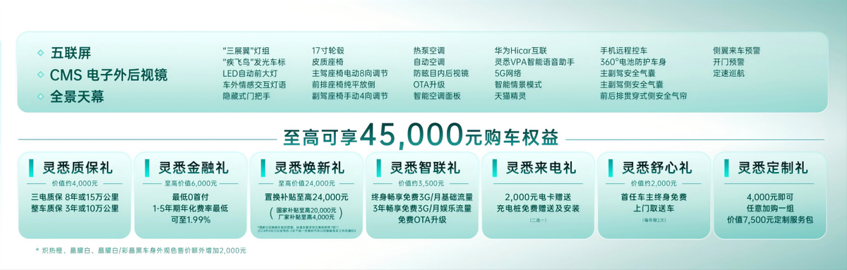 始于颜值,忠于才华,一辆车好看还不够,开起来更要灵得很。灵悉L源自全新灵悉智能电动平台。高功率驱动电机最大功率160kW,最大扭矩310N·m,百公里电耗低至12.9 kWh,采用刀片电池,续航里程520km,加速性能强劲更凸显节能优势。
