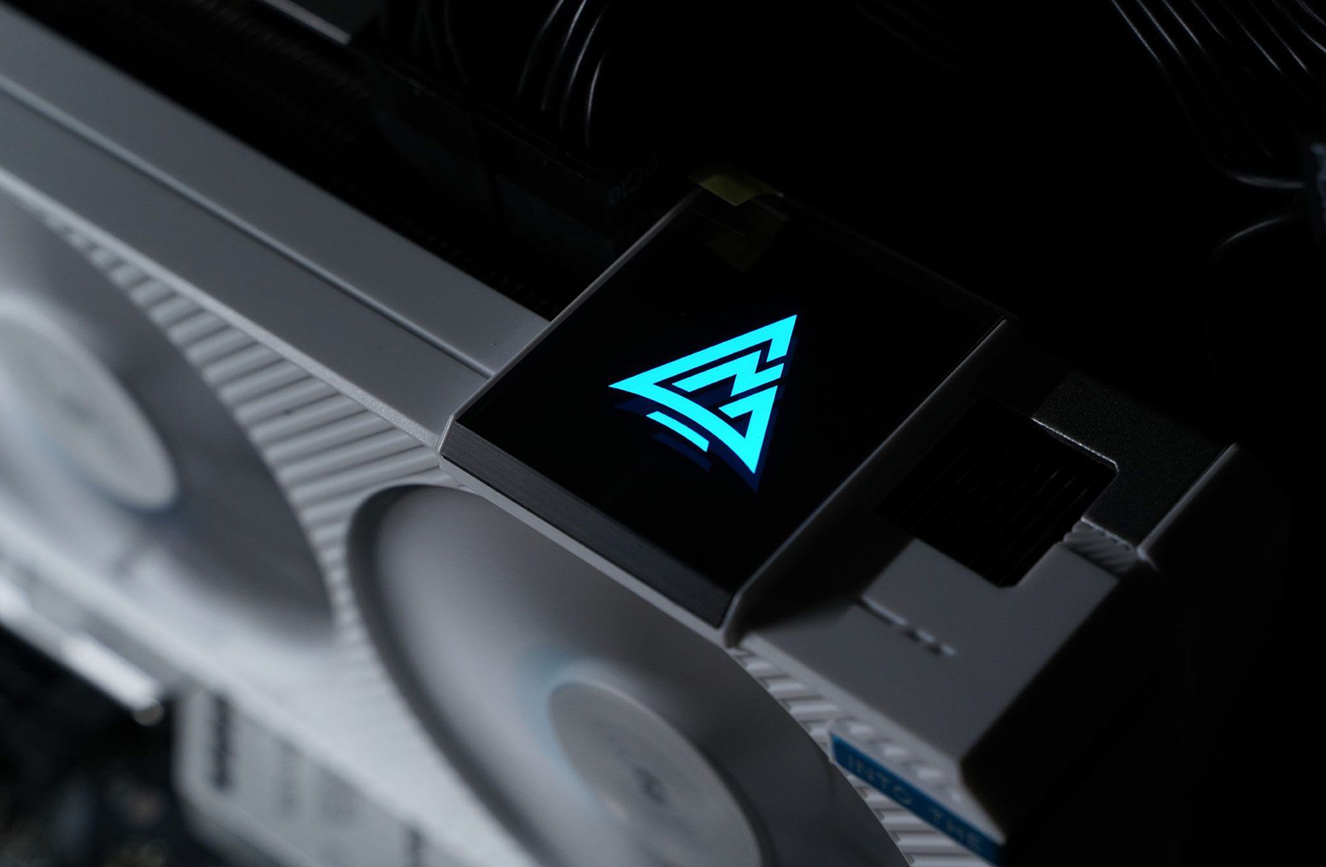 说起灯,其实该显卡还是有的,在尾部带有一颗LED灯光,采用自研灯孔芯片Blues,能控制LED灯光形态,而且还能对主板和电源起到检测作用,便于快速发现故障源头:外接电源异常时灯光为红光闪烁,主板异常时则是黄光闪烁。