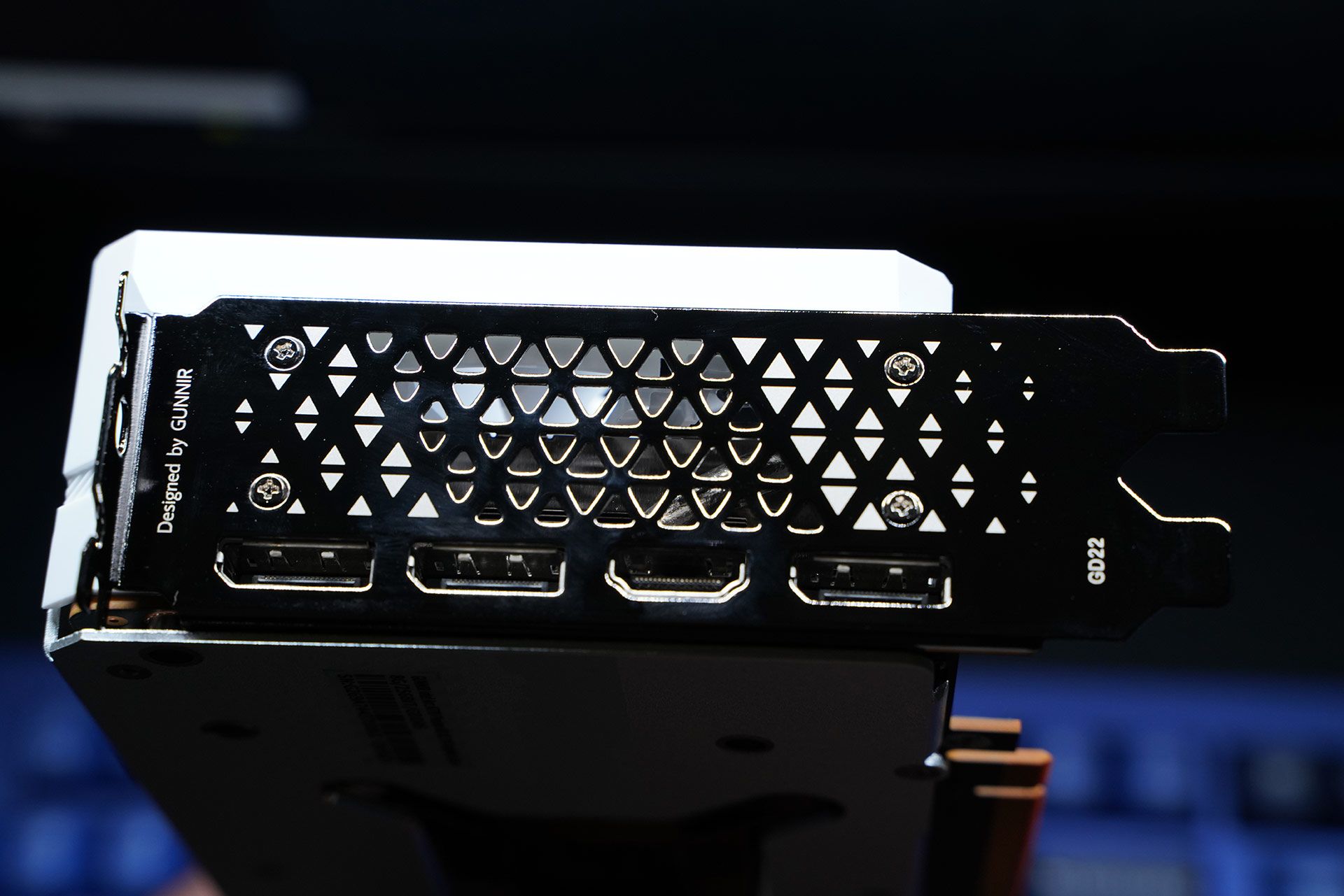 显卡接口方面3个DP2.0和1个HDMI2.0接口可以说基本满足绝大多数人所需,值得一提的是该显卡挡板加入镀镍处理,起到抗氧化的作用,长时间使用后也不会降低颜值。